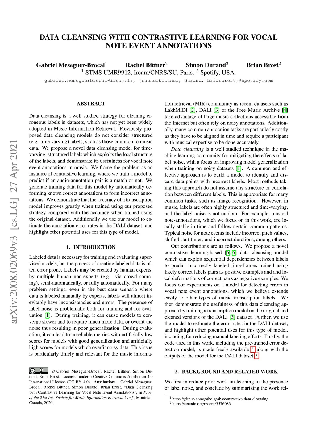 Data Cleansing with Contrastive Learning for Vocal Note Event