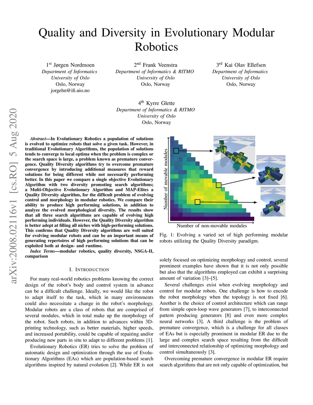 Quality and Diversity in Evolutionary Modular Robotics