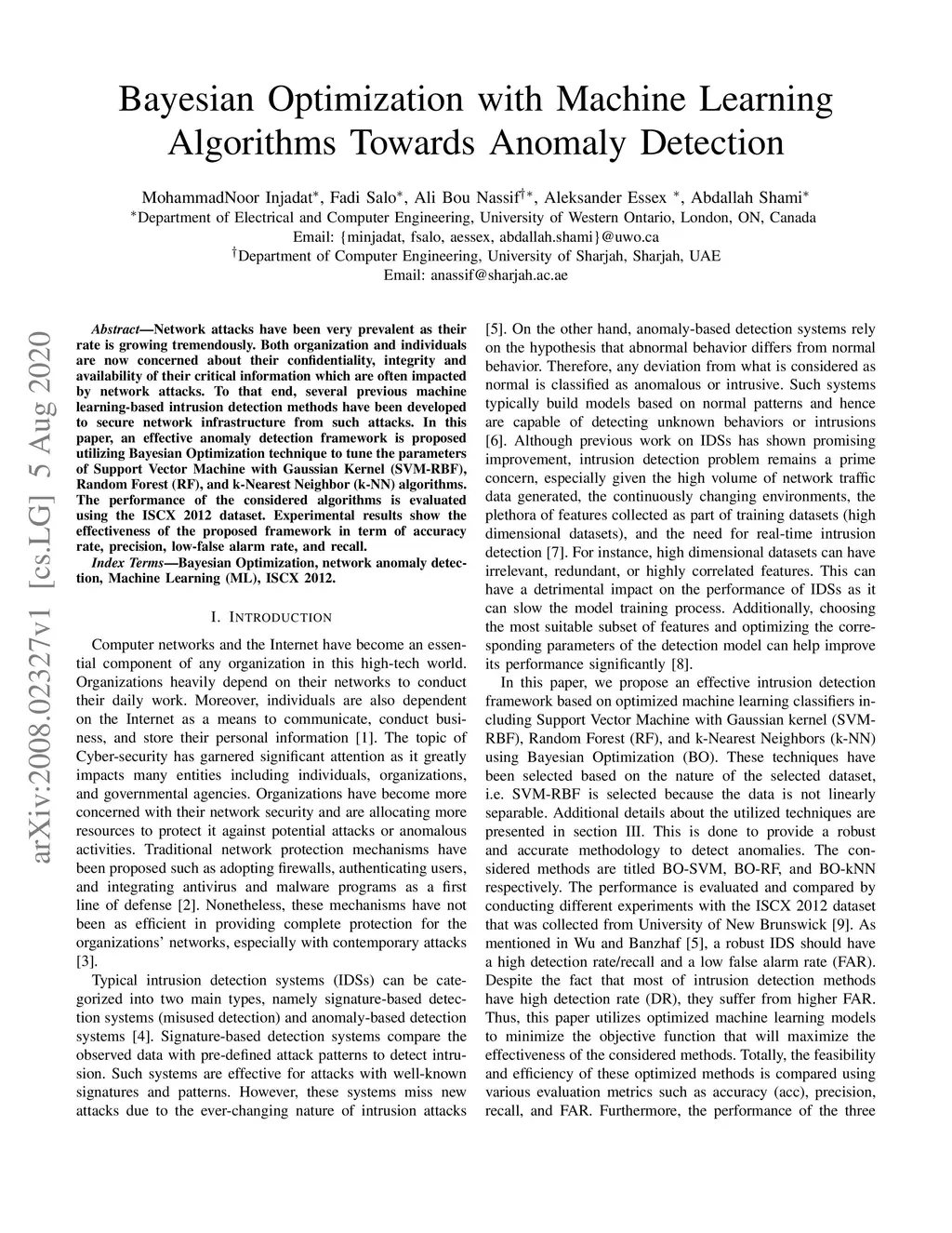 Bayesian Optimization with Machine Learning Algorithms Towards Anomaly