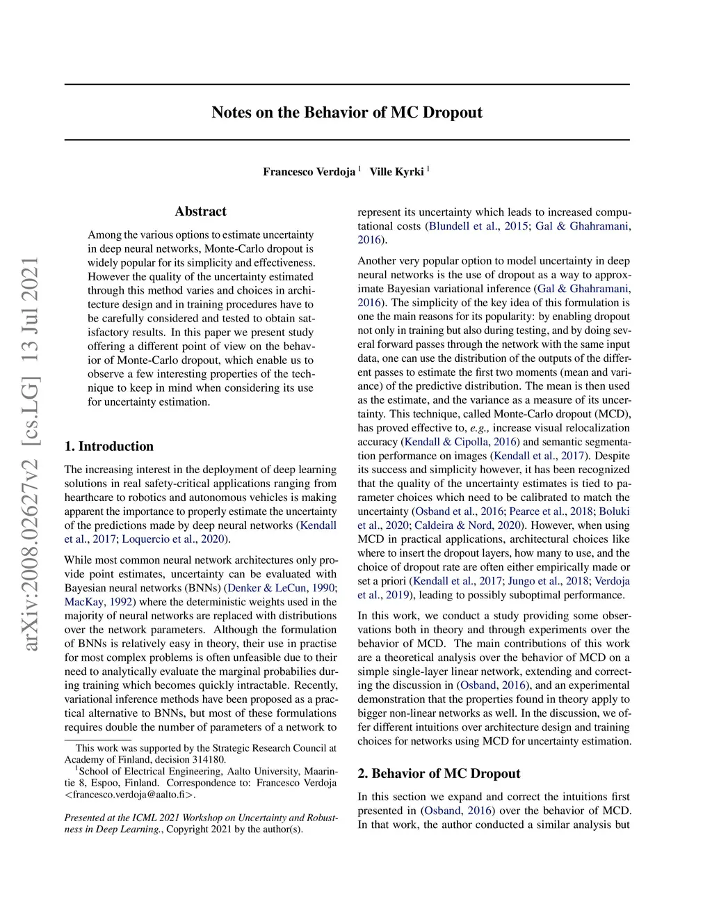 Notes on the Behavior of MC Dropout