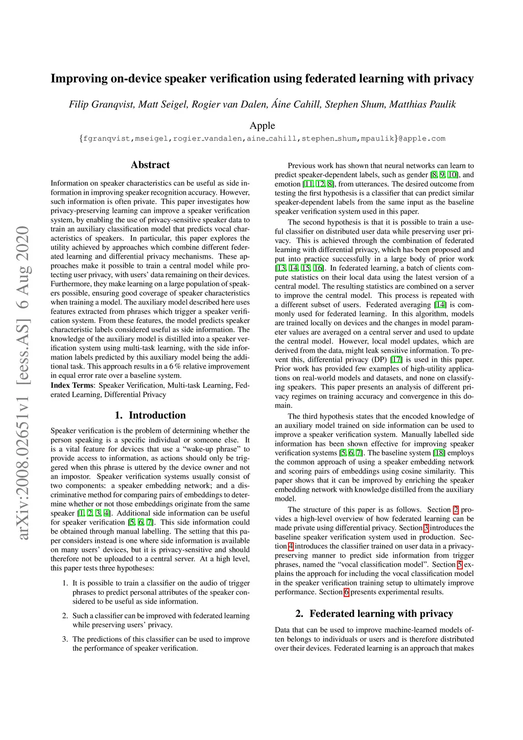 Improving on-device speaker verification using federated learning with