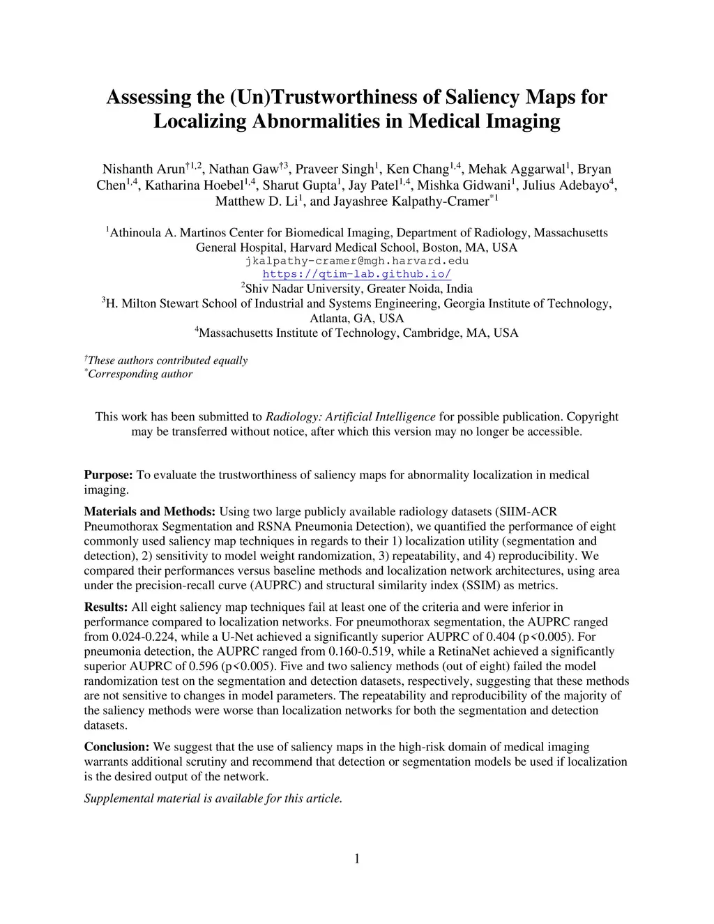 Saliency maps have become a widely used method to make deep learning models more interpretable by providing post-hoc explanations of classifiers through identification of the most pertinent areas of the input medical image. They are increasingly being used in medical imaging to provide clinically plausible explanations for the decisions the neural network makes. However, the utility and robustness of these visualization maps has not yet been rigorously examined in the context of medical imaging. We posit that trustworthiness in this context requires 1) localization utility, 2) sensitivity to model weight randomization, 3) repeatability, and 4) reproducibility. Using the localization information available in two large public radiology datasets, we quantify the performance of eight commonly used saliency map approaches for the above criteria using area under the precision-recall curves (AUPRC) and structural similarity index (SSIM), comparing their performance to various baseline measures. Using our framework to quantify the trustworthiness of saliency maps, we show that all eight saliency map techniques fail at least one of the criteria and are, in most cases, less trustworthy when compared to the baselines. We suggest that their usage in the high-risk domain of medical imaging warrants additional scrutiny and recommend that detection or segmentation models be used if localization is the desired output of the network. Additionally, to promote reproducibility of our findings, we provide the code we used for all tests performed in this work at this link: https://github.com/QTIM-Lab/Assessing-Saliency-Maps.
