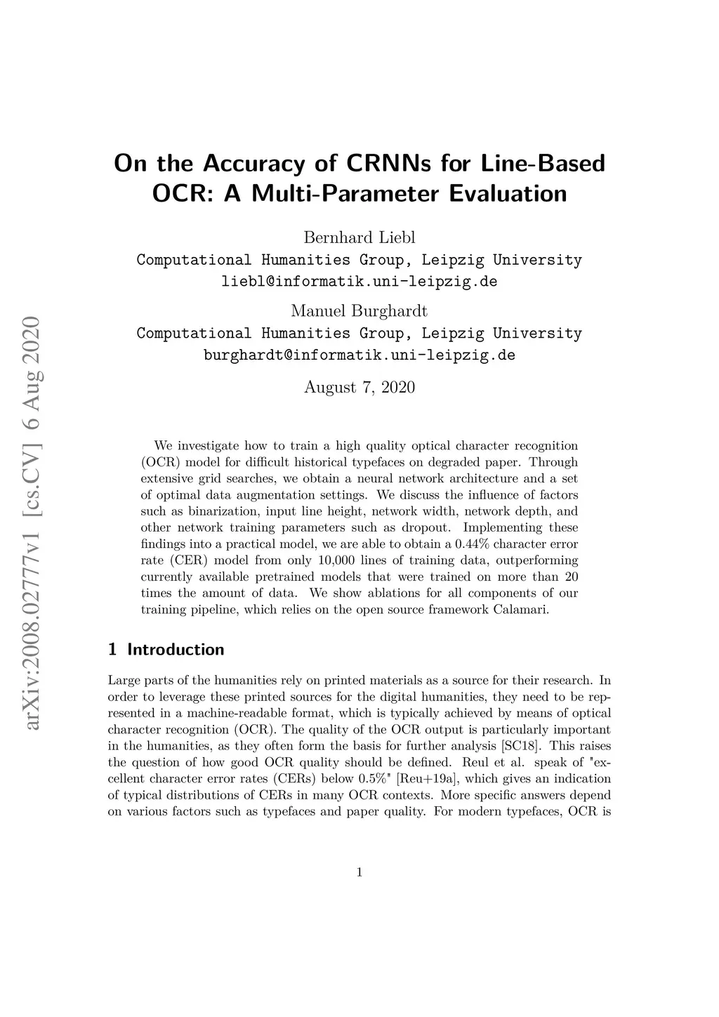 On the Accuracy of CRNNs for Line-Based OCR: A Multi-Parameter
