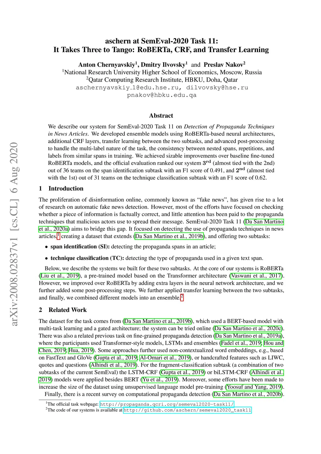 aschern at SemEval-2020 Task 11: It Takes Three to Tango: RoBERTa, CRF,