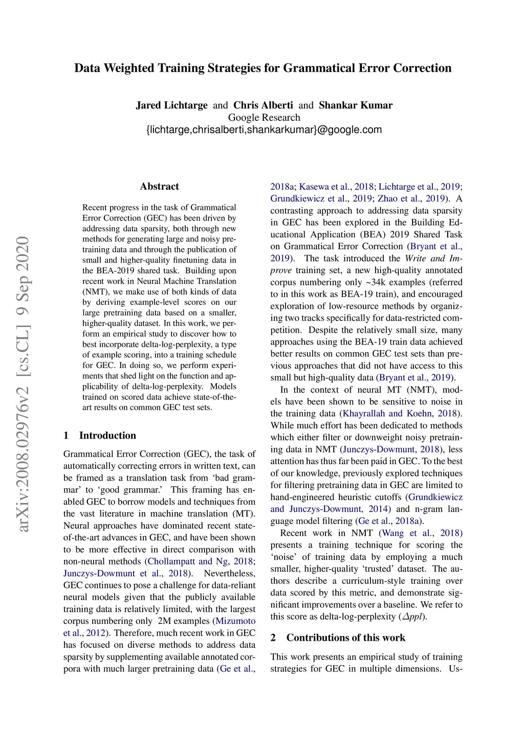 Data Weighted Training Strategies for Grammatical Error Correction