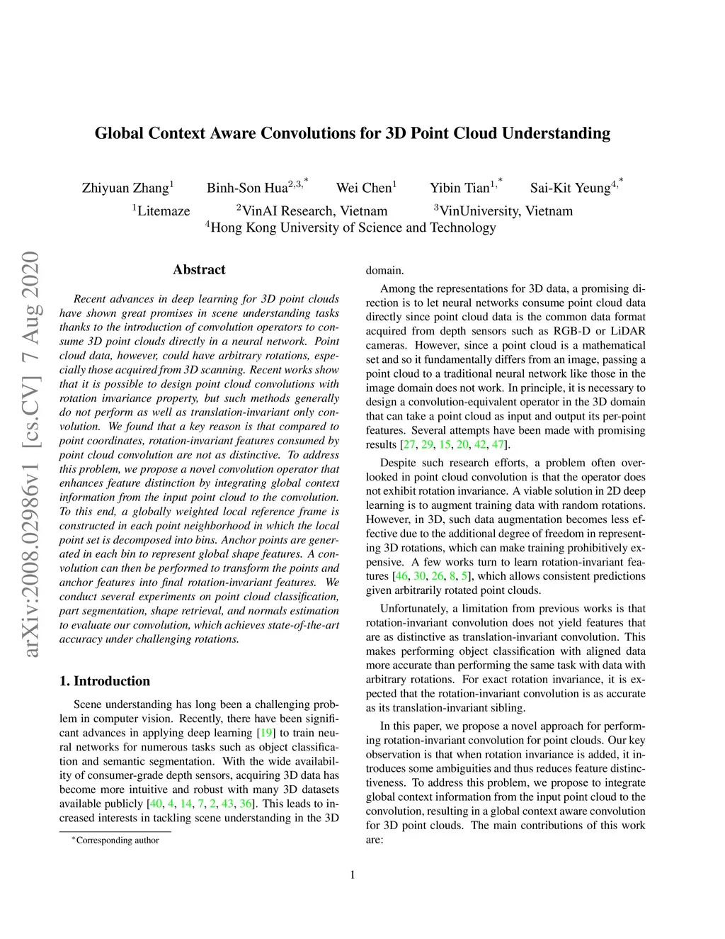 Global Context Aware Convolutions for 3D Point Cloud Understanding