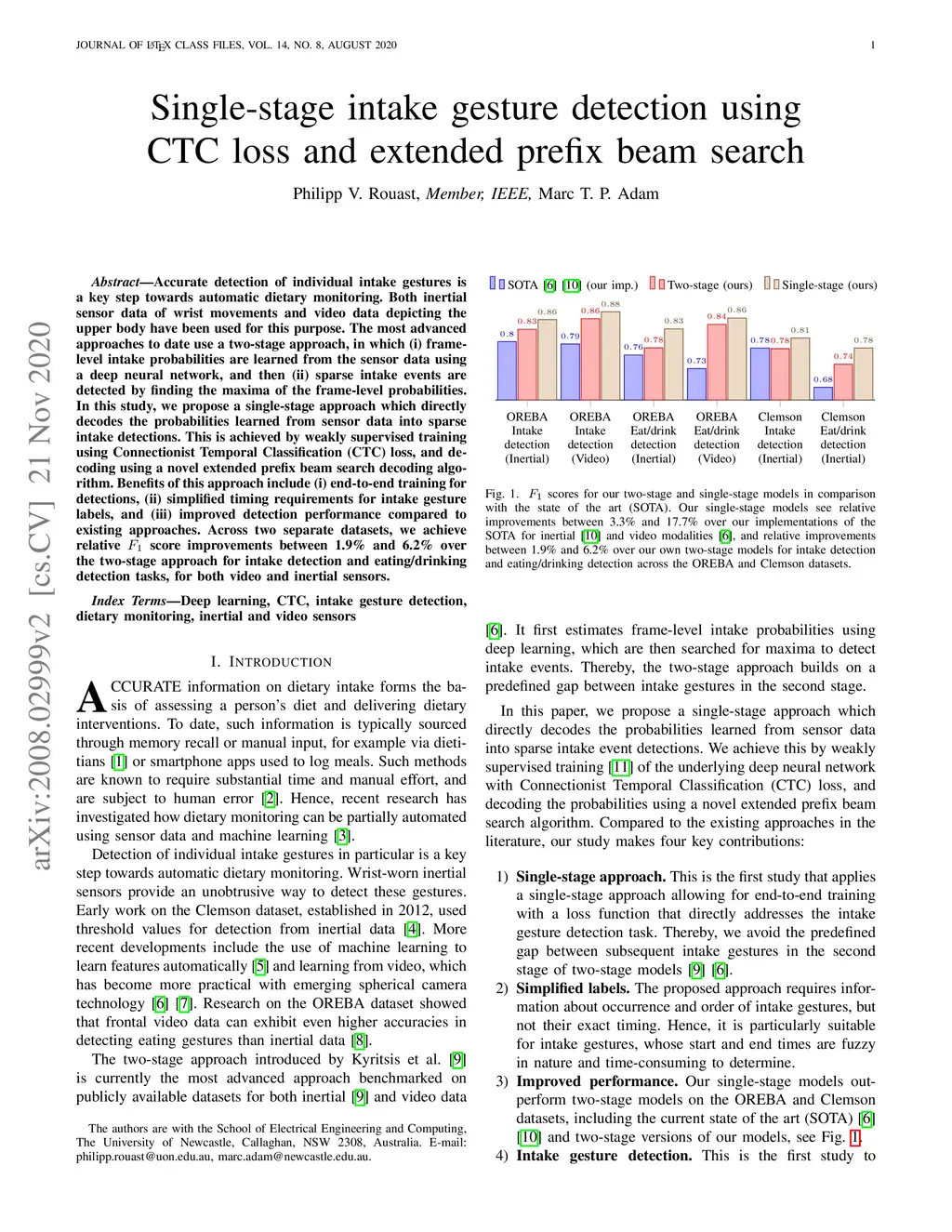 Single-stage intake gesture detection using CTC loss and extended prefix