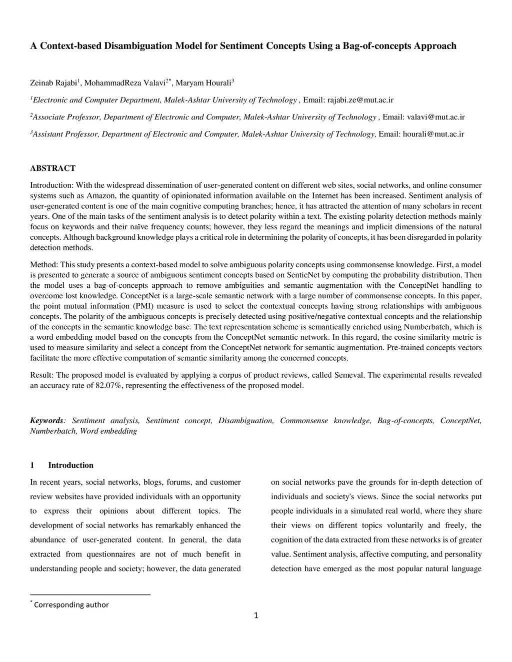 A Context-based Disambiguation Model for Sentiment Concepts Using a