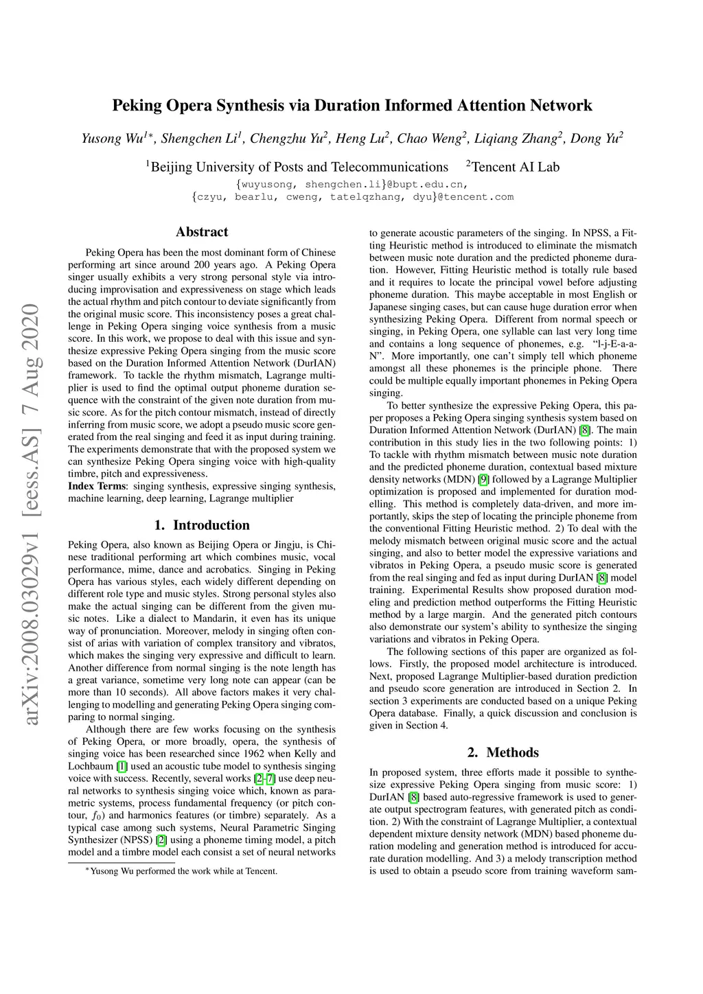 Peking Opera Synthesis via Duration Informed Attention Network