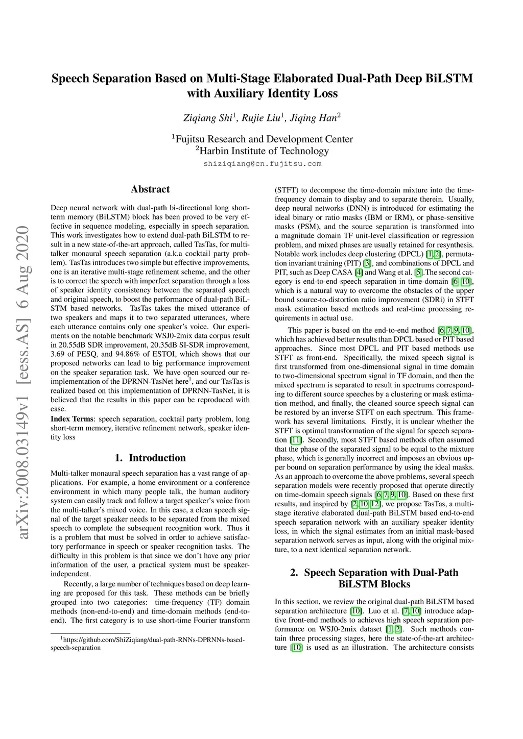 Deep neural network with dual-path bi-directional long short-term memory (BiLSTM) block has been proved to be very effective in sequence modeling, especially in speech separation. This work investigates how to extend dual-path BiLSTM to result in a new state-of-the-art approach, called TasTas, for multi-talker monaural speech separation (a.k.a cocktail party problem). TasTas introduces two simple but effective improvements, one is an iterative multi-stage refinement scheme, and the other is to correct the speech with imperfect separation through a loss of speaker identity consistency between the separated speech and original speech, to boost the performance of dual-path BiLSTM based networks. TasTas takes the mixed utterance of two speakers and maps it to two separated utterances, where each utterance contains only one speaker's voice. Our experiments on the notable benchmark WSJ0-2mix data corpus result in 20.55dB SDR improvement, 20.35dB SI-SDR improvement, 3.69 of PESQ, and 94.86\% of ESTOI, which shows that our proposed networks can lead to big performance improvement on the speaker separation task. We have open sourced our re-implementation of the DPRNN-TasNet here (https://github.com/ShiZiqiang/dual-path-RNNs-DPRNNs-based-speech-separation), and our TasTas is realized based on this implementation of DPRNN-TasNet, it is believed that the results in this paper can be reproduced with ease.