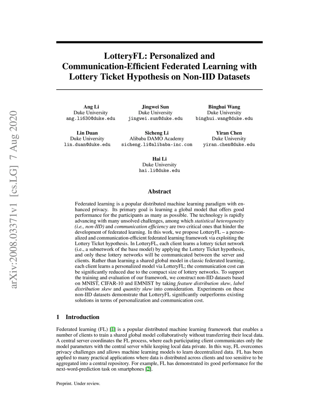 LotteryFL: Personalized and Communication-Efficient Federated Learning