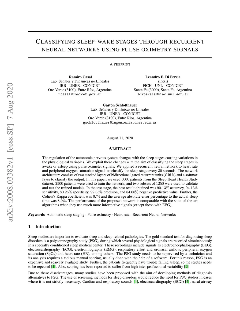 Classifying sleep-wake stages through recurrent neural networks using