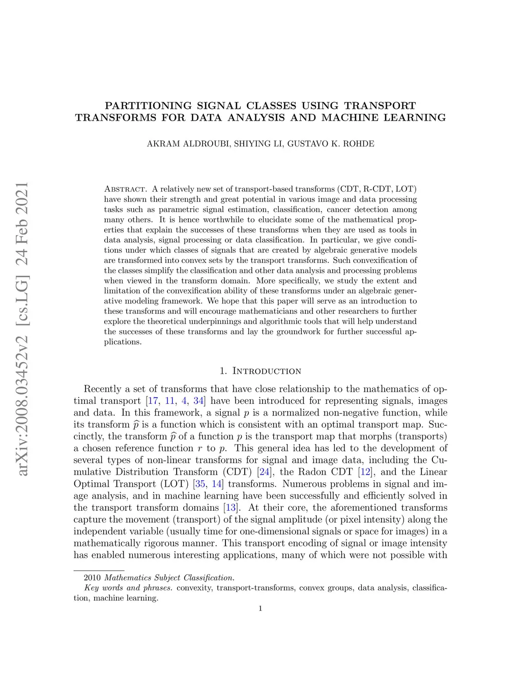 Partitioning signal classes using transport transforms for data analysis