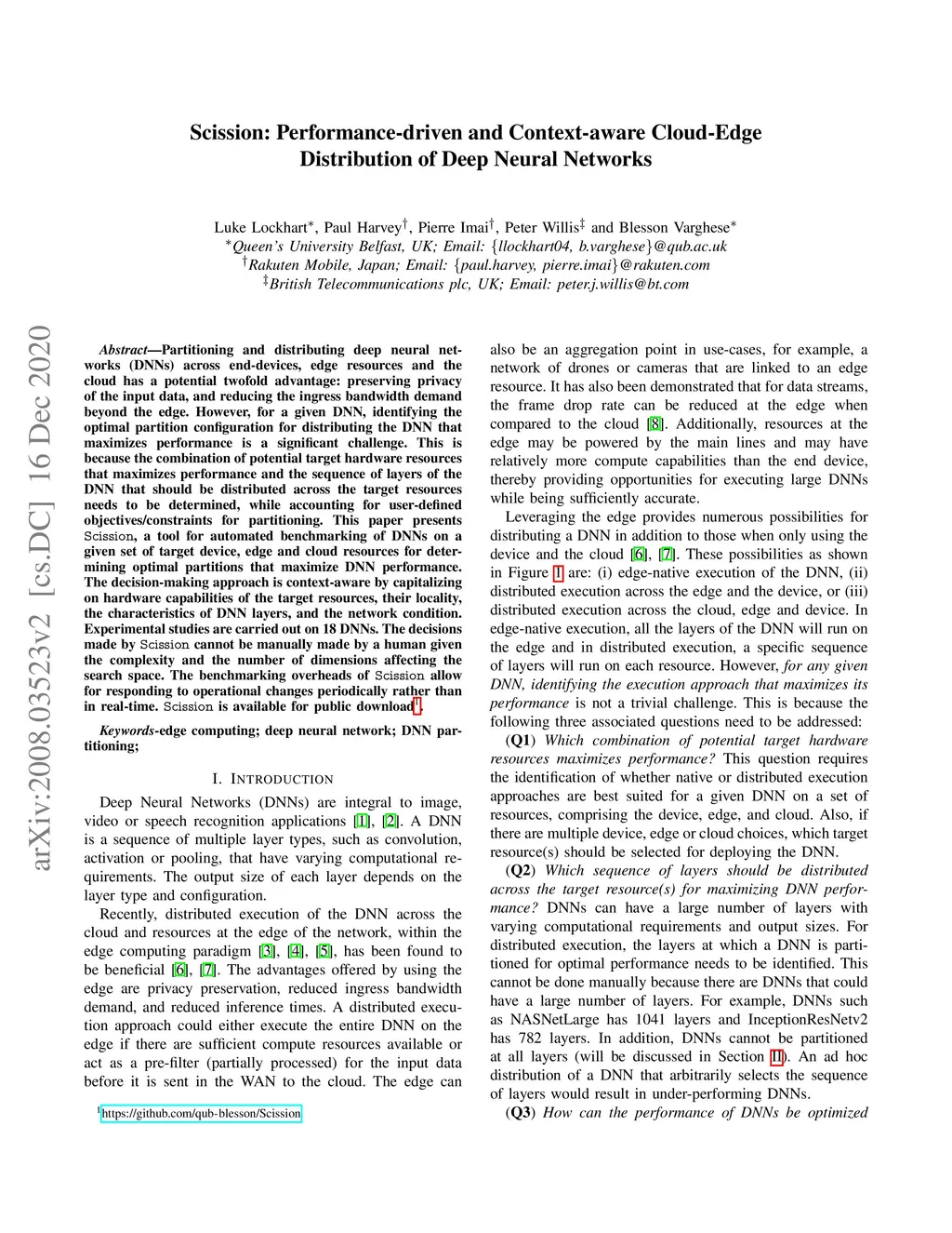 Scission: Performance-driven and Context-aware Cloud-Edge Distribution