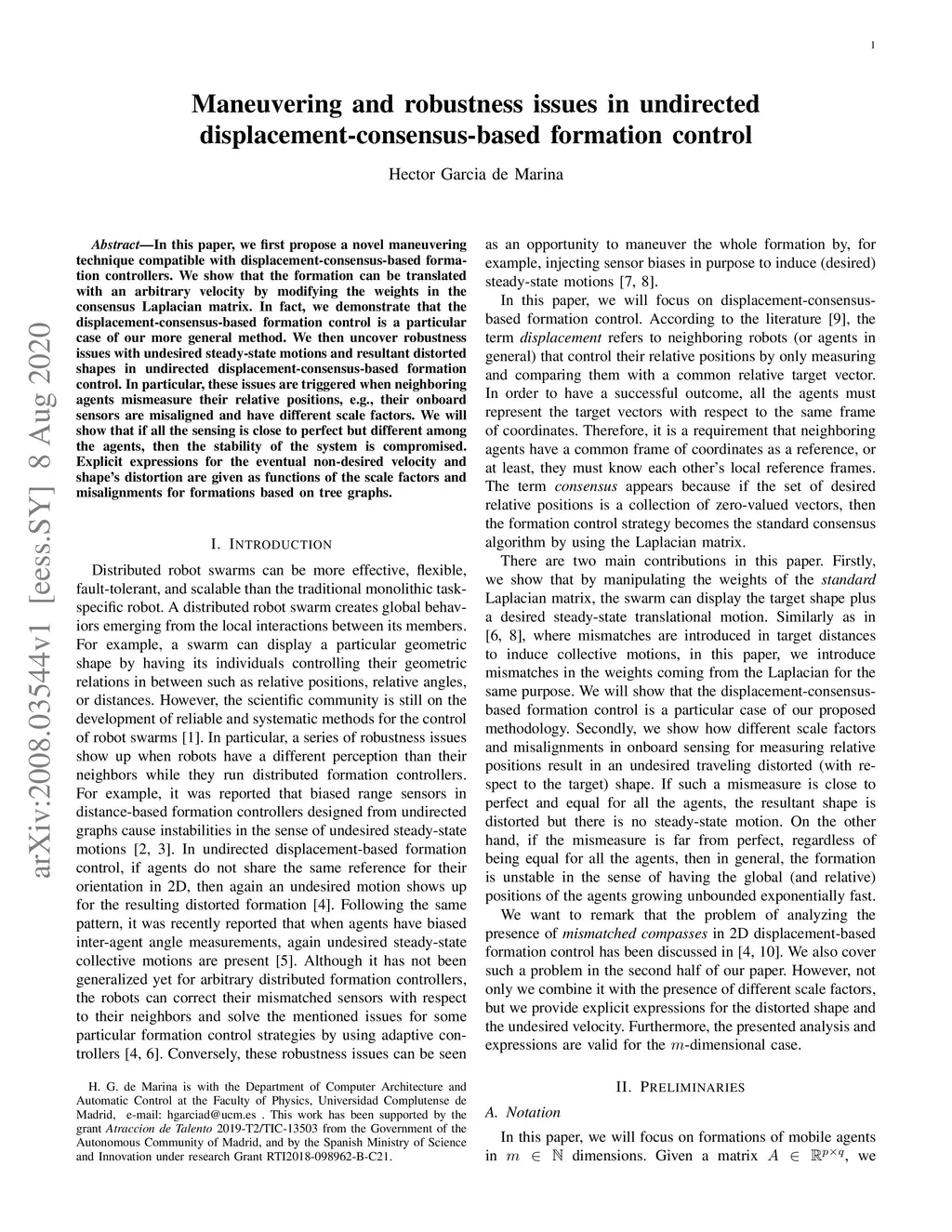 In this paper, we first propose a novel maneuvering technique compatible with displacement-consensus-based formation controllers. We show that the formation can be translated with an arbitrary velocity by modifying the weights in the consensus Laplacian matrix. In fact, we demonstrate that the displacement-consensus-based formation control is a particular case of our more general method. We then uncover robustness issues with undesired steady-state motions and resultant distorted shapes in undirected displacement-consensus-based formation control. In particular, these issues are triggered when neighboring agents mismeasure their relative positions, e.g., their onboard sensors are misaligned and have different scale factors. We will show that if all the sensing is close to perfect but different among the agents, then the stability of the system is compromised. Explicit expressions for the eventual non-desired velocity and shape's distortion are given as functions of the scale factors and misalignments for formations based on tree graphs.
