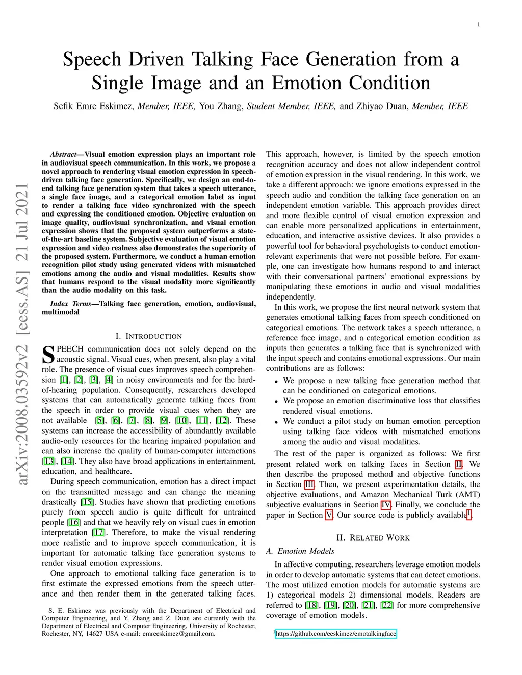 Speech Driven Talking Face Generation from a Single Image and an Emotion