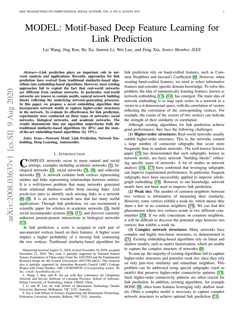 MODEL: Motif-based Deep Feature Learning for Link Prediction