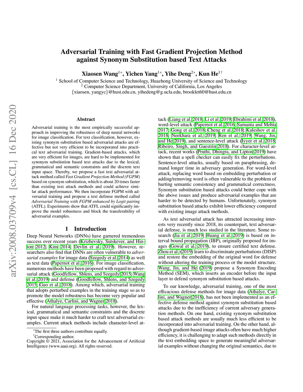 Adversarial Training with Fast Gradient Projection Method against
