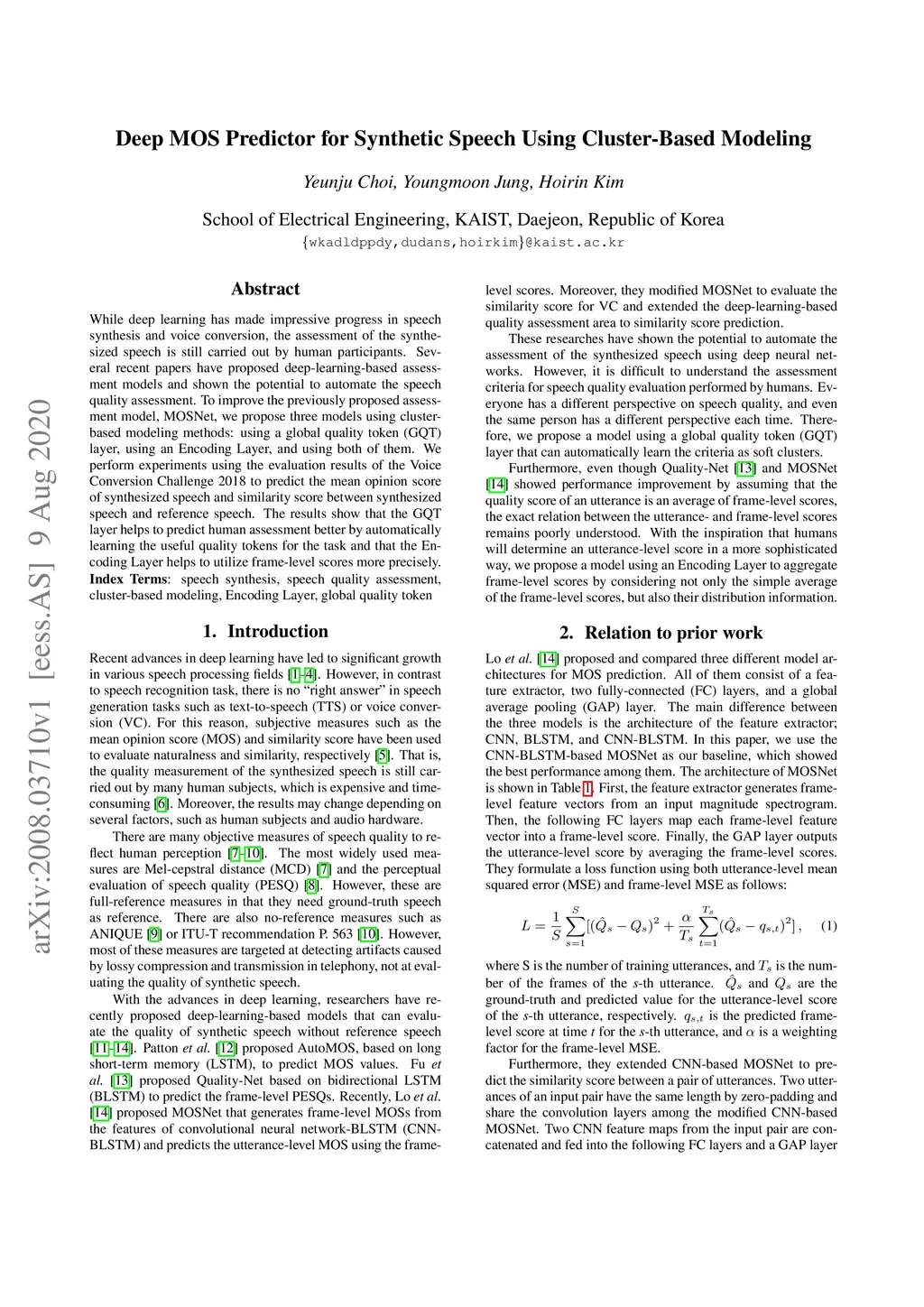 Deep MOS Predictor for Synthetic Speech Using Cluster-Based Modeling