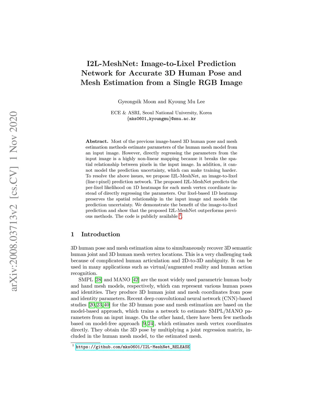 I2L-MeshNet: Image-to-Lixel Prediction Network for Accurate 3D Human