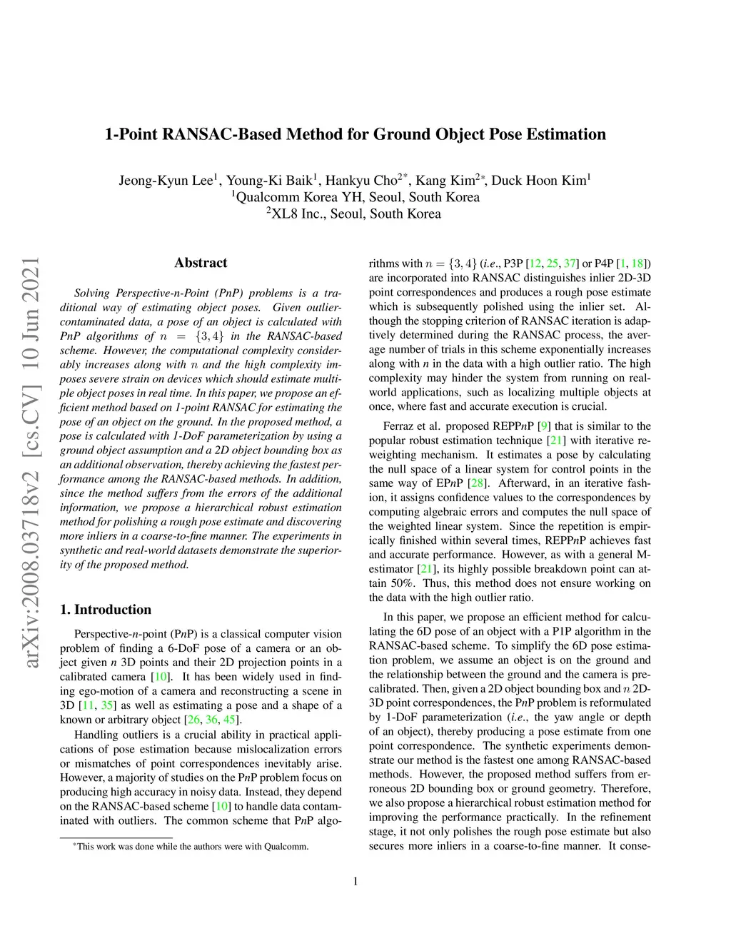 1-Point RANSAC-Based Method for Ground Object Pose Estimation