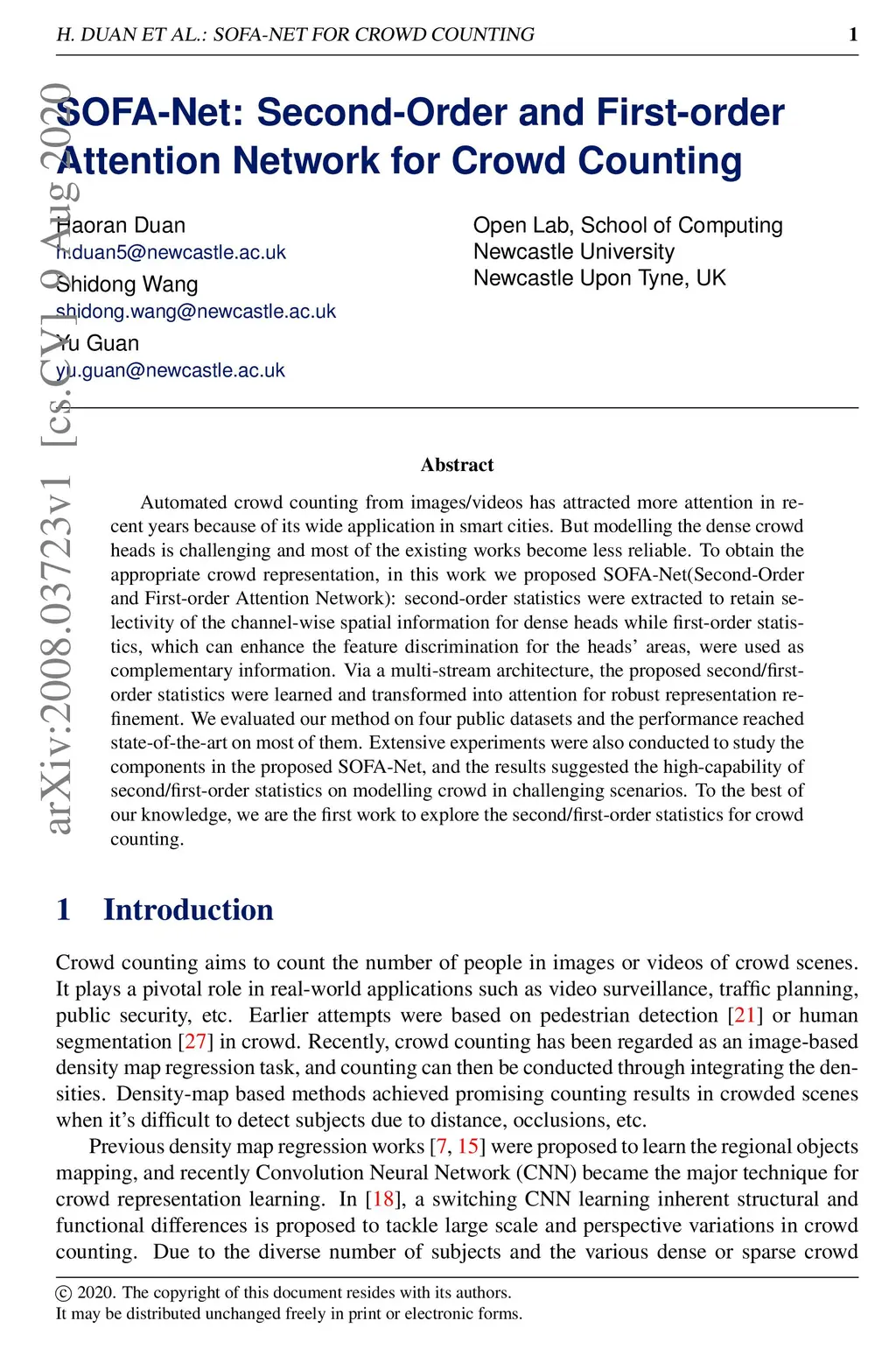 SOFA-Net: Second-Order and First-order Attention Network for Crowd