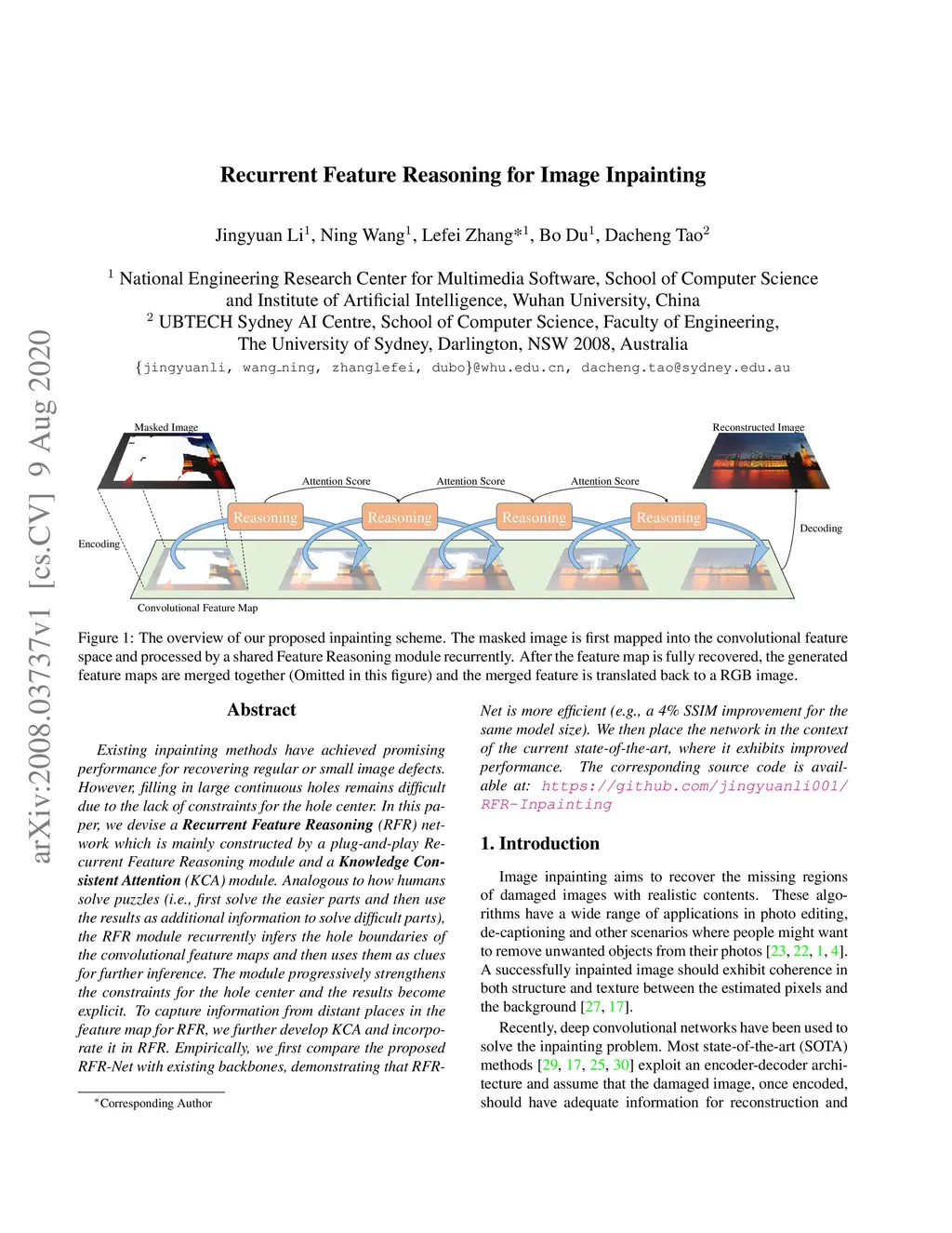 Recurrent Feature Reasoning for Image Inpainting