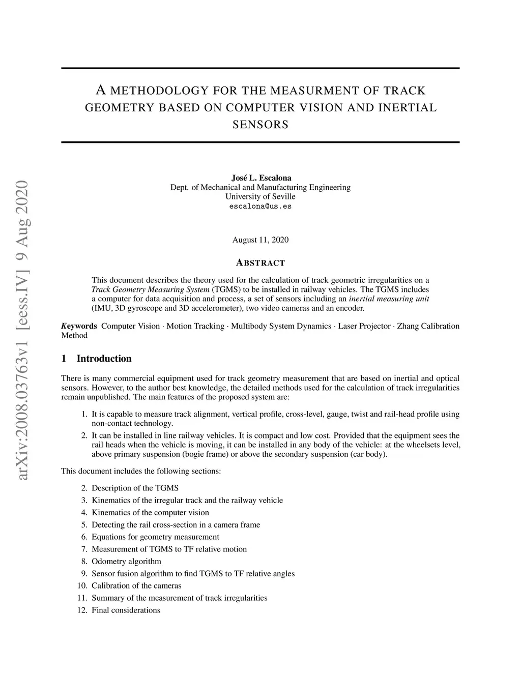A methodology for the measurement of track geometry based on computer