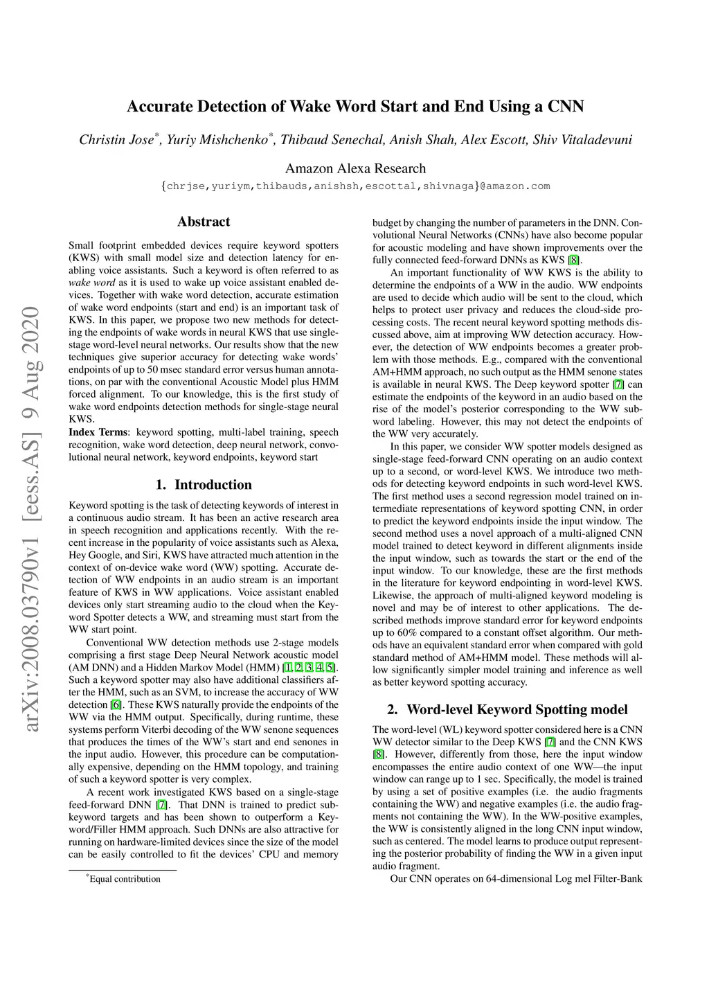 Small footprint embedded devices require keyword spotters (KWS) with small model size and detection latency for enabling voice assistants. Such a keyword is often referred to as \textit{wake word} as it is used to wake up voice assistant enabled devices. Together with wake word detection, accurate estimation of wake word endpoints (start and end) is an important task of KWS. In this paper, we propose two new methods for detecting the endpoints of wake words in neural KWS that use single-stage word-level neural networks. Our results show that the new techniques give superior accuracy for detecting wake words' endpoints of up to 50 msec standard error versus human annotations, on par with the conventional Acoustic Model plus HMM forced alignment. To our knowledge, this is the first study of wake word endpoints detection methods for single-stage neural KWS.