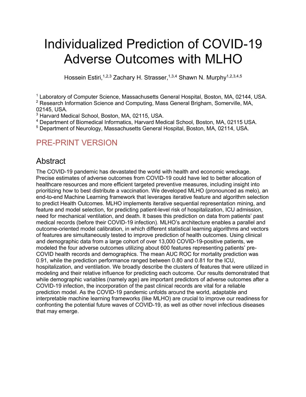 Individualized Prediction of COVID-19 Adverse outcomes with MLHO