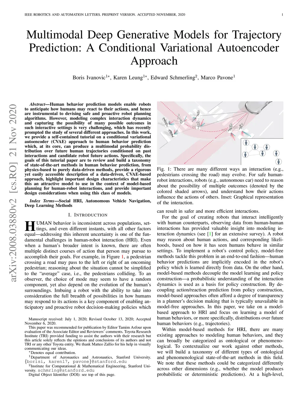 Multimodal Deep Generative Models for Trajectory Prediction: A