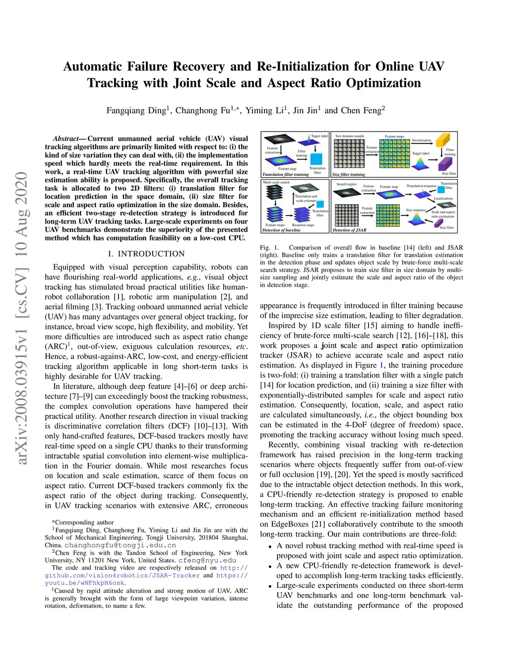 Current unmanned aerial vehicle (UAV) visual tracking algorithms are primarily limited with respect to: (i) the kind of size variation they can deal with, (ii) the implementation speed which hardly meets the real-time requirement. In this work, a real-time UAV tracking algorithm with powerful size estimation ability is proposed. Specifically, the overall tracking task is allocated to two 2D filters: (i) translation filter for location prediction in the space domain, (ii) size filter for scale and aspect ratio optimization in the size domain. Besides, an efficient two-stage re-detection strategy is introduced for long-term UAV tracking tasks. Large-scale experiments on four UAV benchmarks demonstrate the superiority of the presented method which has computation feasibility on a low-cost CPU.