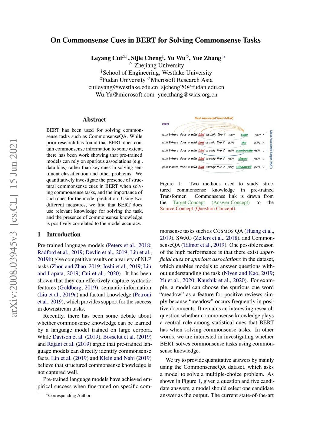 On Commonsense Cues in BERT for Solving Commonsense Tasks