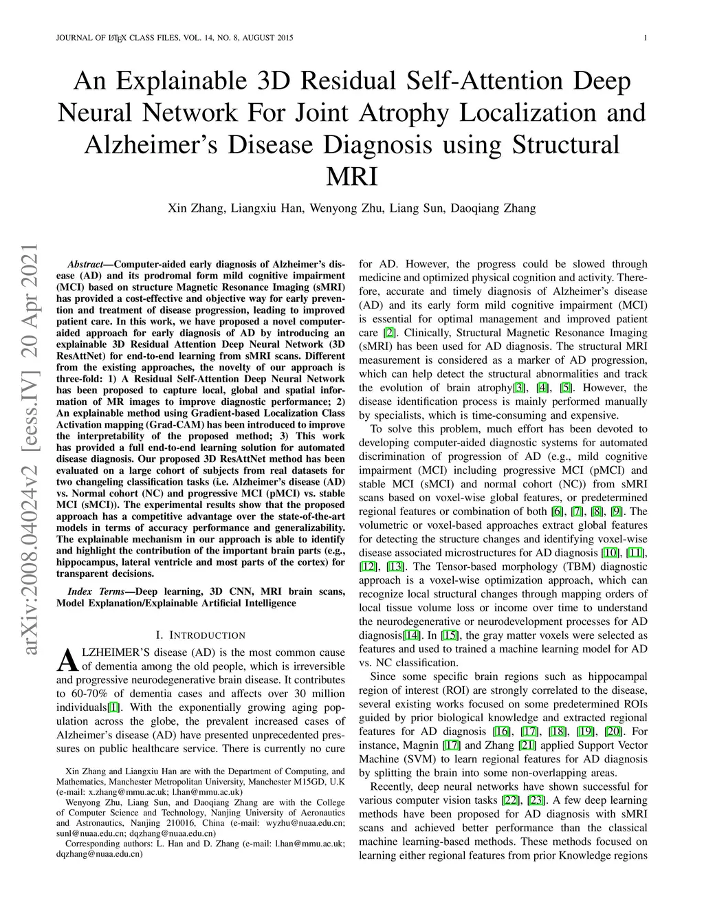 An Explainable 3D Residual Self-Attention Deep Neural Network FOR Joint