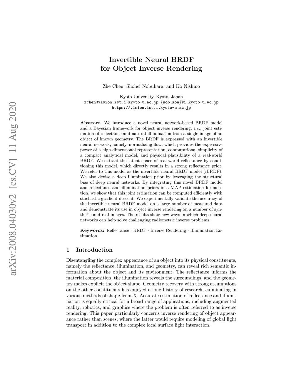 We introduce a novel neural network-based BRDF model and a Bayesian framework for object inverse rendering, i.e., joint estimation of reflectance and natural illumination from a single image of an object of known geometry. The BRDF is expressed with an invertible neural network, namely, normalizing flow, which provides the expressive power of a high-dimensional representation, computational simplicity of a compact analytical model, and physical plausibility of a real-world BRDF. We extract the latent space of real-world reflectance by conditioning this model, which directly results in a strong reflectance prior. We refer to this model as the invertible neural BRDF model (iBRDF). We also devise a deep illumination prior by leveraging the structural bias of deep neural networks. By integrating this novel BRDF model and reflectance and illumination priors in a MAP estimation formulation, we show that this joint estimation can be computed efficiently with stochastic gradient descent. We experimentally validate the accuracy of the invertible neural BRDF model on a large number of measured data and demonstrate its use in object inverse rendering on a number of synthetic and real images. The results show new ways in which deep neural networks can help solve challenging radiometric inverse problems.