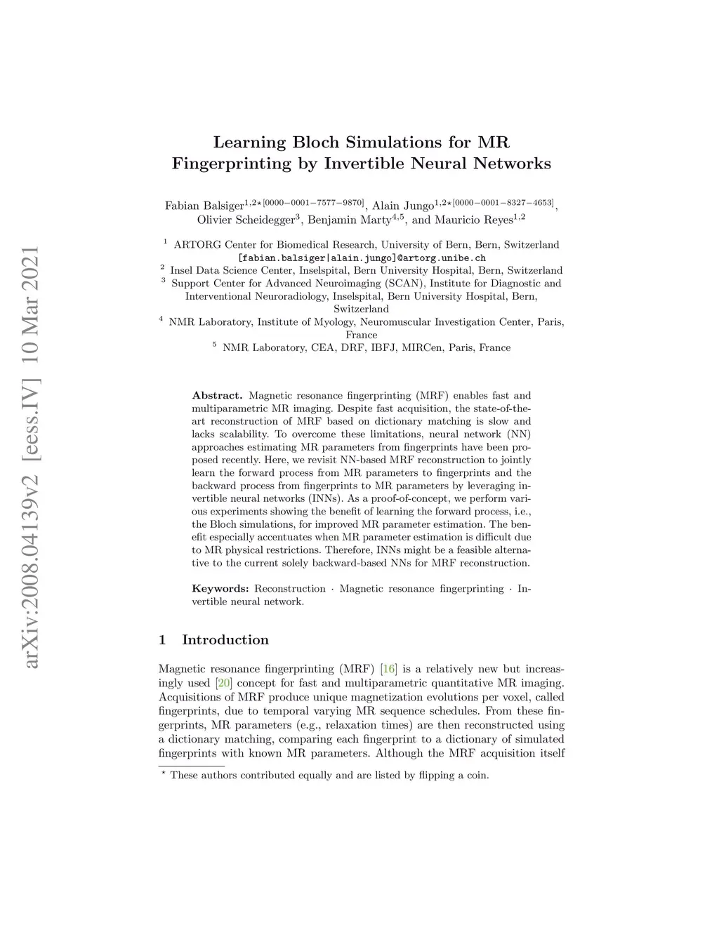 Magnetic resonance fingerprinting (MRF) enables fast and multiparametric MR imaging. Despite fast acquisition, the state-of-the-art reconstruction of MRF based on dictionary matching is slow and lacks scalability. To overcome these limitations, neural network (NN) approaches estimating MR parameters from fingerprints have been proposed recently. Here, we revisit NN-based MRF reconstruction to jointly learn the forward process from MR parameters to fingerprints and the backward process from fingerprints to MR parameters by leveraging invertible neural networks (INNs). As a proof-of-concept, we perform various experiments showing the benefit of learning the forward process, i.e., the Bloch simulations, for improved MR parameter estimation. The benefit especially accentuates when MR parameter estimation is difficult due to MR physical restrictions. Therefore, INNs might be a feasible alternative to the current solely backward-based NNs for MRF reconstruction.