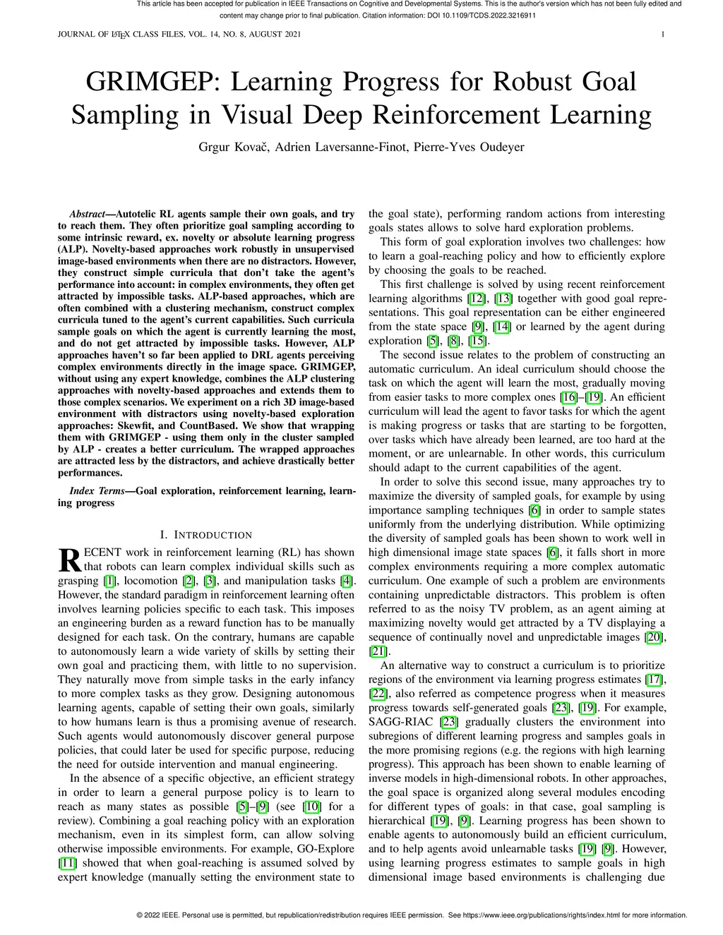GRIMGEP: Learning Progress for Robust Goal Sampling in Visual Deep