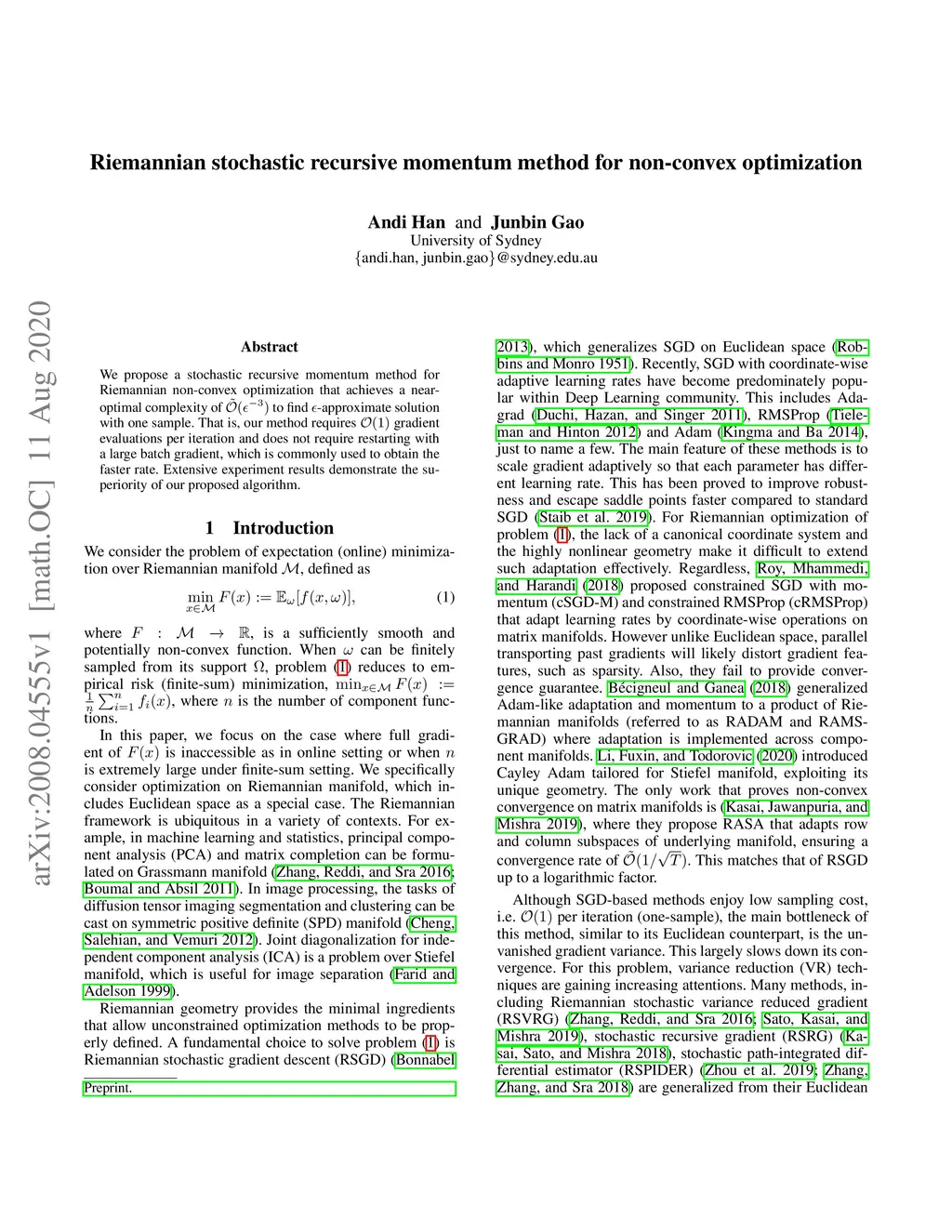 Riemannian stochastic recursive momentum method for non-convex