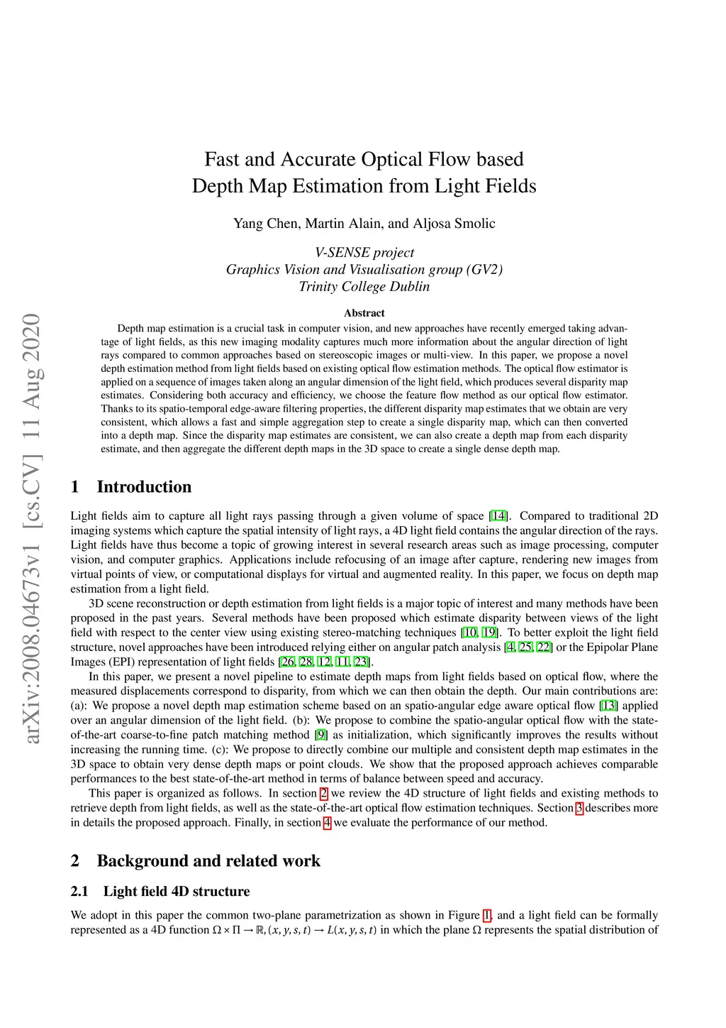 Fast and Accurate Optical Flow based Depth Map Estimation from Light