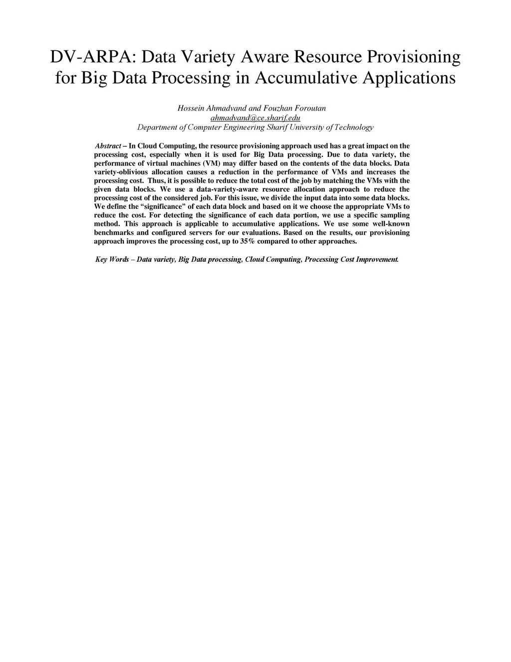 DV-ARPA: Data Variety Aware Resource Provisioning for Big Data