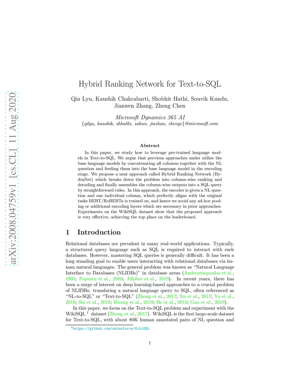 Hybrid Ranking Network for Text-to-SQL