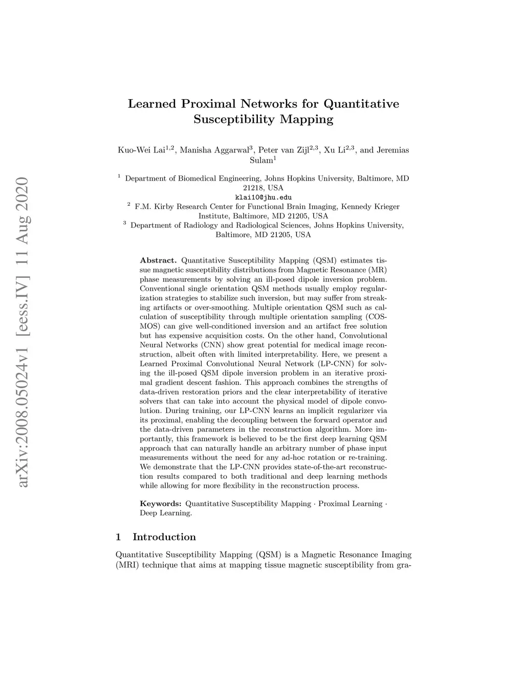 Learned Proximal Networks for Quantitative Susceptibility Mapping