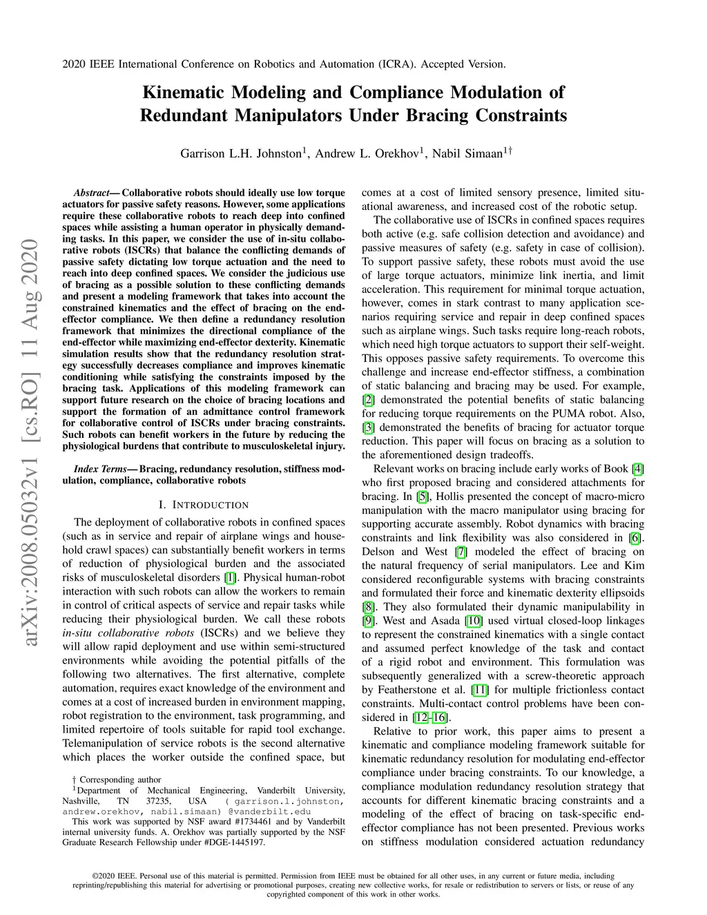 Kinematic Modeling and Compliance Modulation of Redundant Manipulators