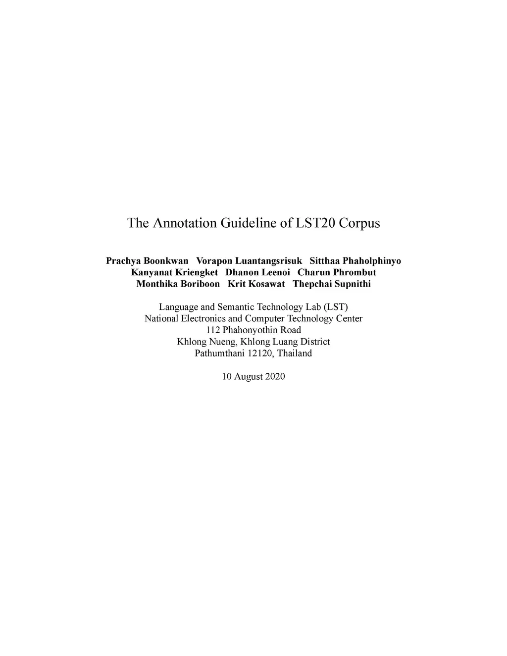 The Annotation Guideline of LST20 Corpus
