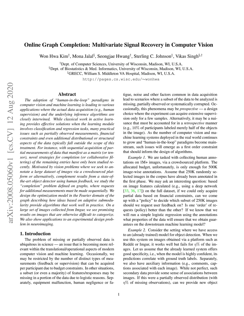 Online Graph Completion: Multivariate Signal Recovery in Computer Vision