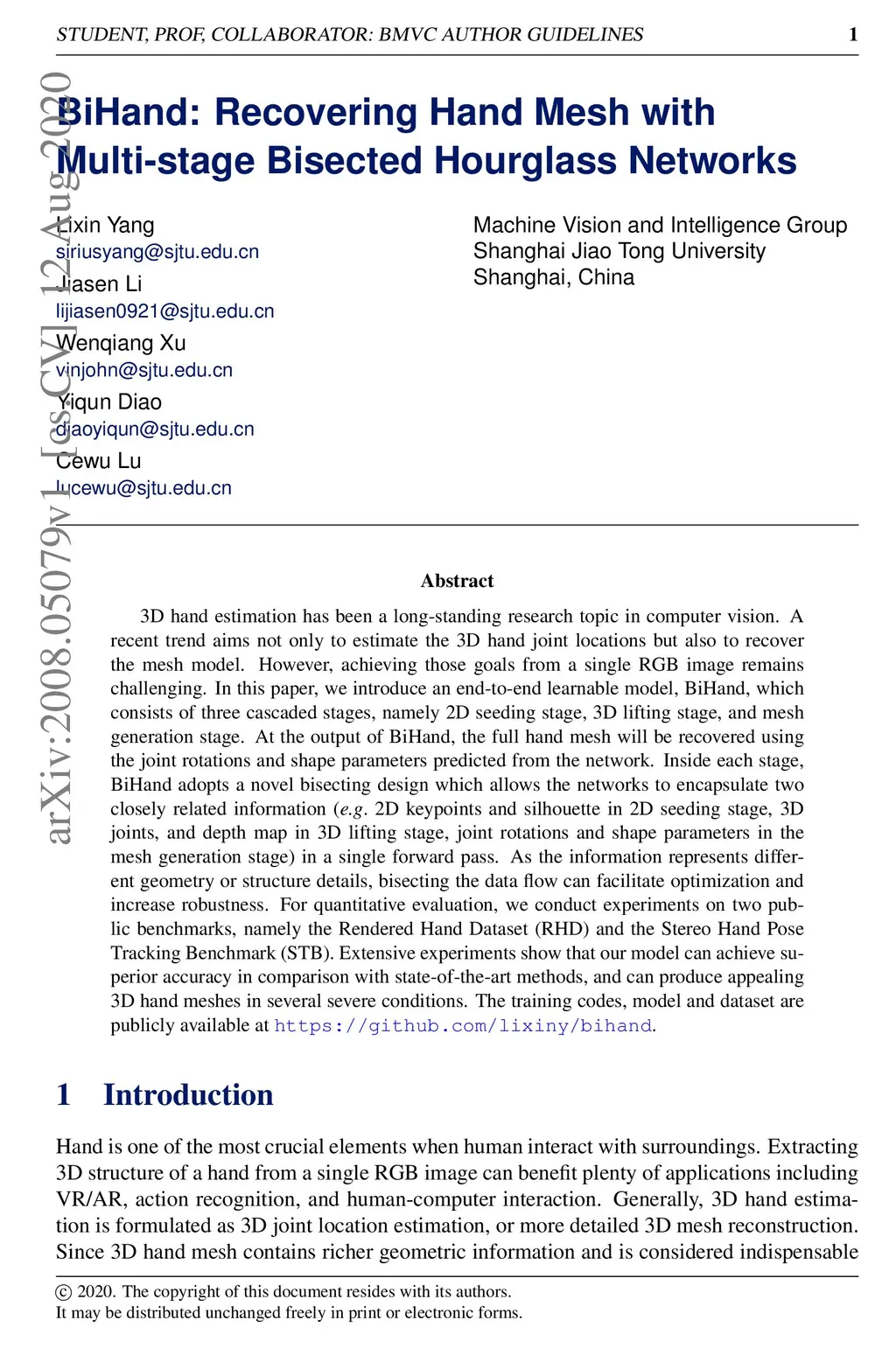 BiHand: Recovering Hand Mesh with Multi-stage Bisected Hourglass