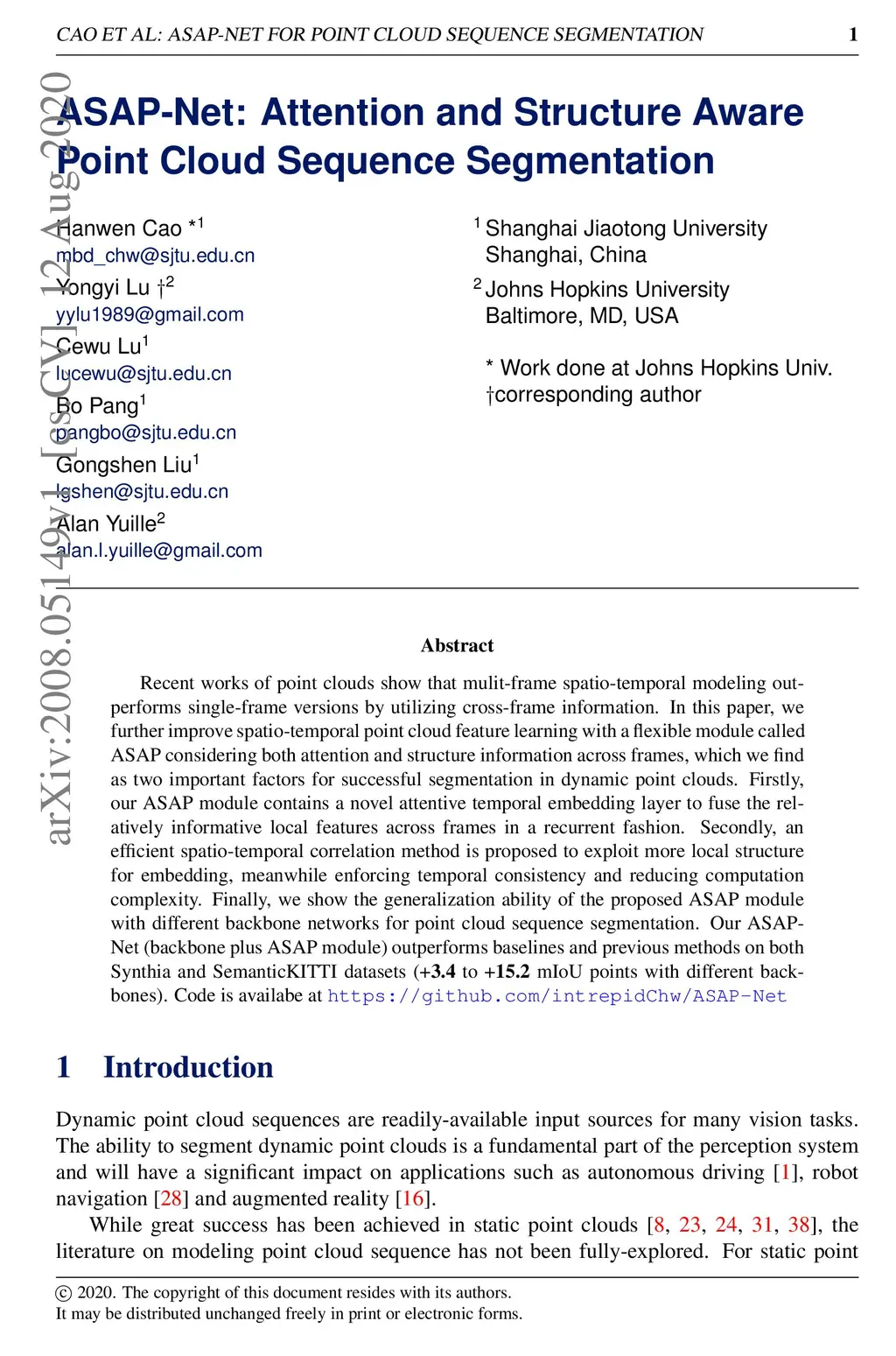 ASAP-Net: Attention and Structure Aware Point Cloud Sequence
