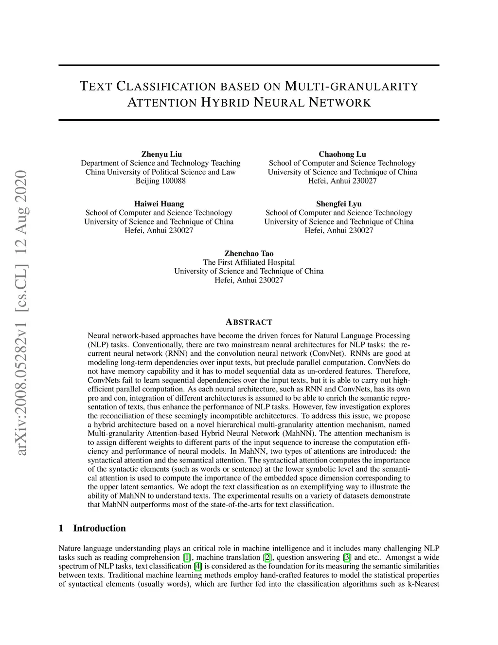 Text Classification based on Multi-granularity Attention Hybrid Neural