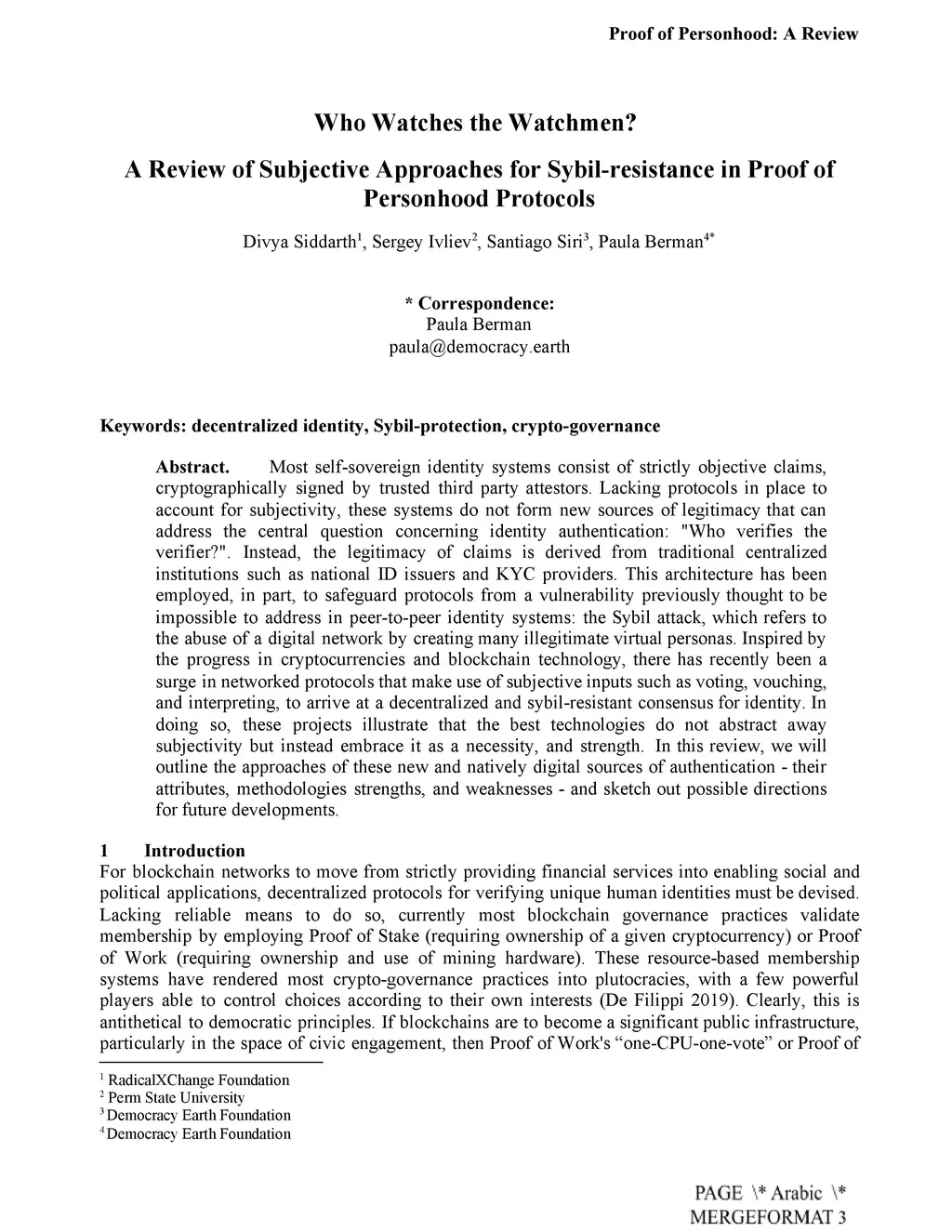 Most current self-sovereign identity systems may be categorized as strictly objective, consisting of cryptographically signed statements issued by trusted third party attestors. This failure to provide an input for subjectivity accounts for a central challenge: the inability to address the question of "Who verifies the verifier?". Instead, these protocols outsource their legitimacy to mechanisms beyond their internal structure, relying on traditional centralized institutions such as national ID issuers and KYC providers to verify the claims they hold. This reliance has been employed to safeguard applications from a vulnerability previously thought to be impossible to address in distributed systems: the Sybil attack problem, which describes the abuse of an online system by creating many illegitimate virtual personas. Inspired by the progress in cryptocurrencies and blockchain technology, there has recently been a surge in networked protocols that make use of subjective inputs such as voting, vouching, and interpreting, to arrive at a decentralized and sybil-resistant consensus for identity. In this article, we will outline the approaches of these new and natively digital sources of authentication -- their attributes, methodologies strengths, and weaknesses -- and sketch out possible directions for future developments.