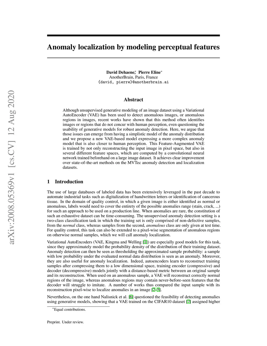 Anomaly localization by modeling perceptual features